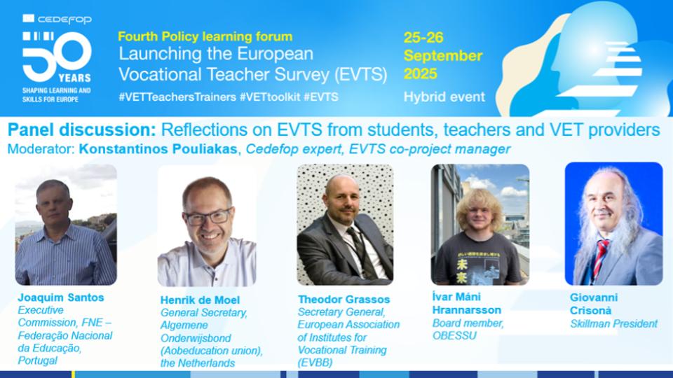 The fourth Policy Learning Forum on VET Teachers and Trainers, hosted by Cedefop, marks an important milestone with the official launch of the European Vocational Teacher Survey (EVTS).